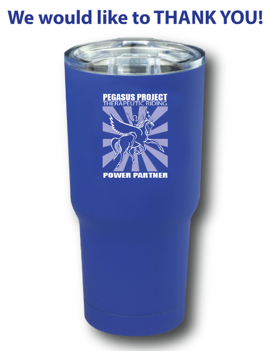 All monthly donations of $25 and over will receive this customized 17oz. Power Partner Stainless Steel Travel Mug!